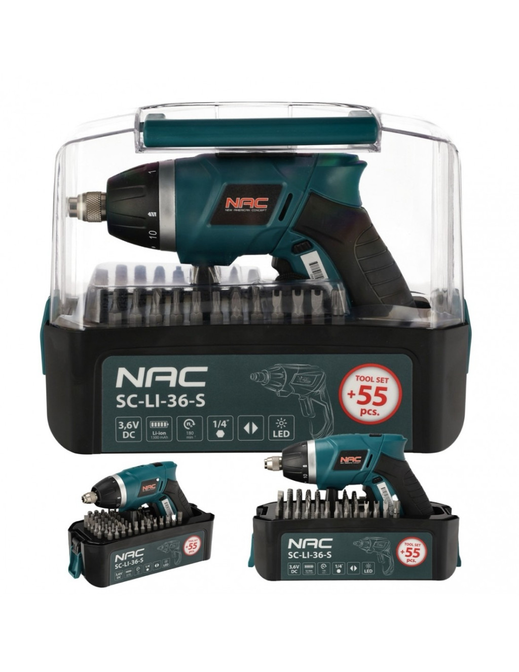 A NAC SC-LI-36-S egyesíti a teljesítményt, a kényelmet és a biztonságot. Kompakt méretének köszönhetően bármely szerszámosláda elfér, a csuklópántnak köszönhetően pedig biztonságosan használható magasan is. A készletben 55 darab tartozék található – bitek és fejek széles választéka minden alapvető feladathoz. Ez a modell nemcsak hobbifelhasználóknak, hanem szakembereknek is ideális választás, akik megbízható, mindennapos használatra tervezett csavarozót keresnek.