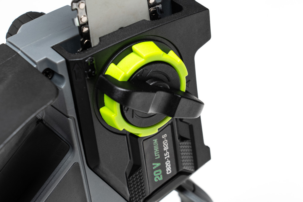 A láncfűrészt egy 20 V-os, 2 000 mAh-s lítium-ion akkumulátor hajtja. Ha lemerül, egyszerűen feltölthető a mellékelt töltővel. A teljes töltés mindössze 80 percet vesz igénybe.