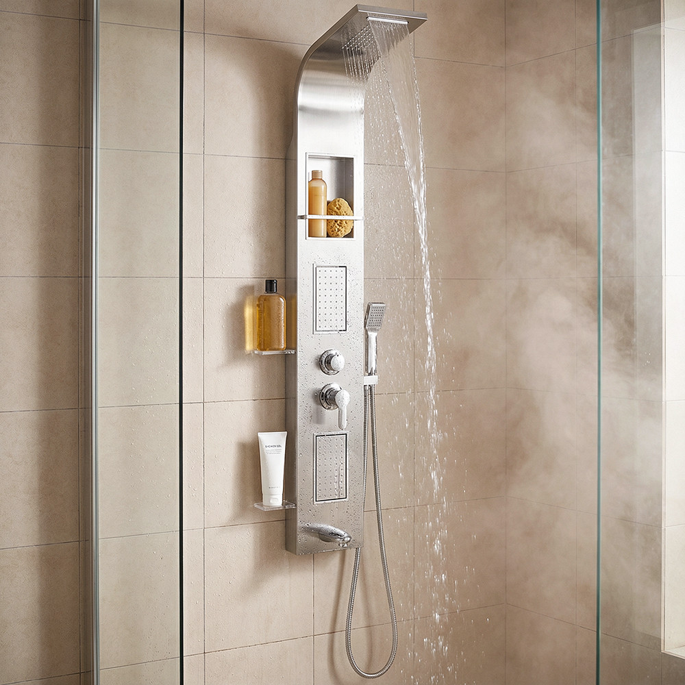 A hidromasszázs zuhanypanelen két hidromasszázs panel található, amelyek kifinomult masszázst nyújtanak a testnek. Ezek a fúvókák finom és erőteljes vízsugarakkal stimulálják az izmokat, segítve a feszültség és a stressz oldását. A hidromasszázs funkció magas szintű relaxációt és revitalizációt biztosít a zuhanyzás során. A zuhanypanelhez tartozik egy kádtöltő csaptelep, amely lehetővé teszi a fürdőkád gyors és hatékony feltöltését. Ez a funkció különösen kényelmes lehet, ha egy gyors fürdést vagy relaxációt szeretne a meleg vízben. A kádtöltő csaptelep egyszerűen és precízen szabályozza a víz hőmérsékletét és áramlását.
