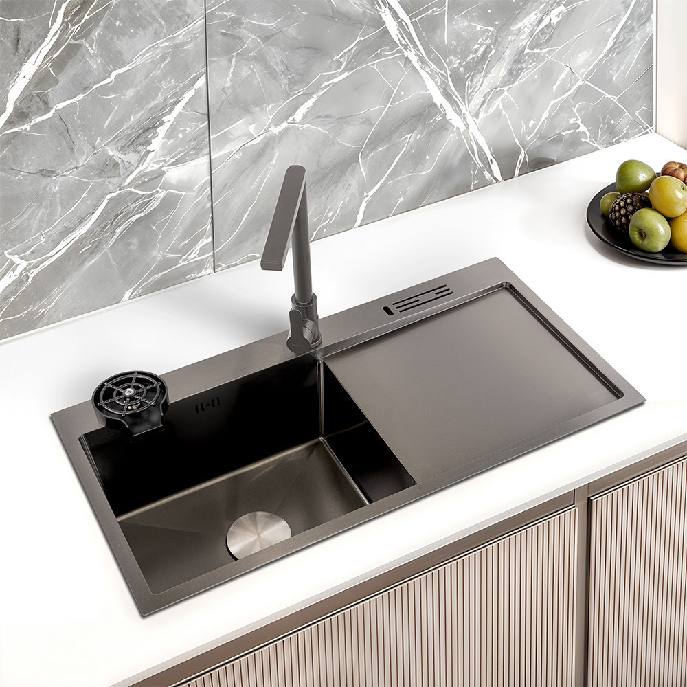 A felület nano technológiás bevonata ellenáll a zsírfoltoknak, vízkőnek és szennyeződéseknek. A fekete-bronz szín mélységet és eleganciát kölcsönöz a mosogatónak, a speciálisan csiszolt felület pedig karcálló, így hosszú távon is megőrzi újszerű megjelenését.