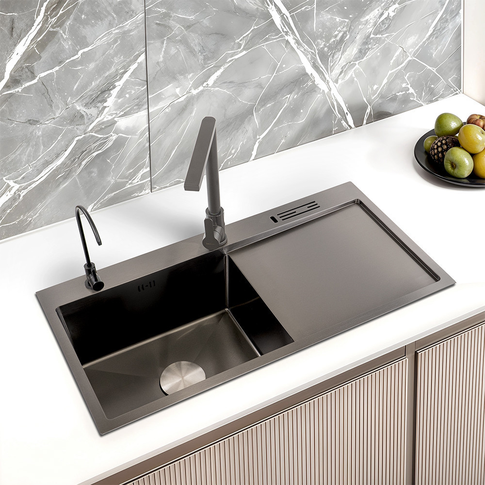 A fekete-bronz felület nemcsak különleges megjelenést kölcsönöz, hanem a nano technológiának köszönhetően ellenáll a zsírnak, vízkőnek és ujjlenyomatoknak is. A karcálló, csiszolt felület pedig gondoskodik arról, hogy mosogatója évekkel később is újszerűen ragyogjon.