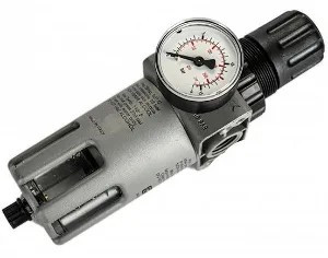 A sűrített levegős hálózatba építhető 1/2" szűrő-szabályzó, vízleválasztó egység centrifugál elvű szinterszűrővel van ellátva. A vízleeresztés kézi működtetésű. Az egység csatlakozási mérete: 1/2" belső menet A manométer csatlakozása: 1/8" Max. üzemi nyomás: 16 bar A nyomás 0-12 bar nyomásérték között szabályozható. A csésze kapacitása: 50 ml Az egység a 40 mm átmérőjű manométert is tartalmazza.