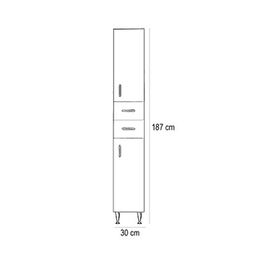 A fürdőszobabútor kevés helyet foglal viszont tágas pakolórésszel rendelkezik ahol kényelmesen elférnek a fürdőszobai pipere eszközök. Kevés helyigénye miatt kisebb fürdőszobák berendezésére is alkalmas, például panel lakásokban. A termék magas minőségű bútorlapból készül és színben passzoló élzárókkal van ellátva.