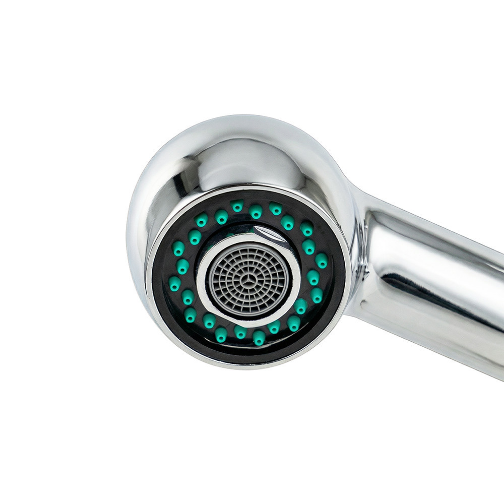 A kihúzható, kétfunkciós zuhanyfej lehetővé teszi, hogy egyszerűen válthass a normál és a zuhanysugaras vízáram között.Ideális nagyobb edények, zöldségek vagy gyümölcsök tisztításához – miközben a csap ergonomikus kialakítása kényelmes használatot biztosít minden mozdulatnál.