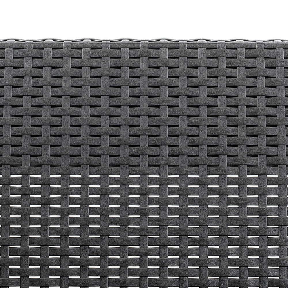 A garnitúrához tartozó párnatartós asztal nemcsak helytakarékos és praktikus, hanem stílusos kiegészítője is az ülőgarnitúrának. Tároló funkciója révén mindig kéznél tarthatod a párnákat vagy egyéb kültéri kiegészítőket.