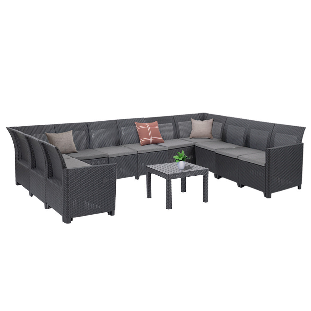 A szett 2 db sarokkanapéból, egy 3 személyes kanapéból, több különálló elemből és egy 59x59x43 cm-es orlando asztalból áll – így összesen 11 személy számára kínál kényelmes ülőhelyet.