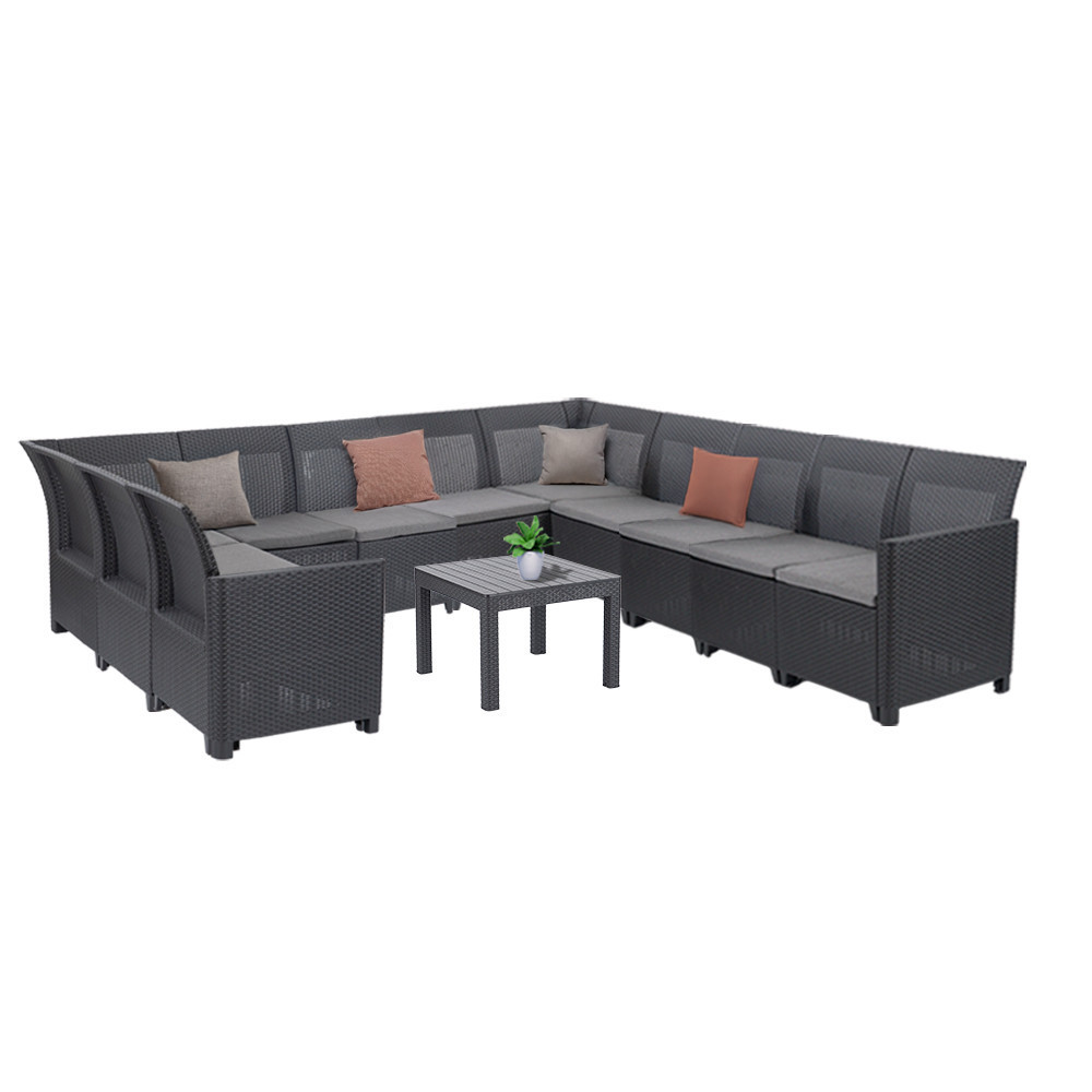 A szett 2 db sarokkanapéból, egy 3 személyes kanapéból, több különálló elemből és egy 59x59x43 cm-es orlando asztalból áll – így összesen 11 személy számára kínál kényelmes ülőhelyet.