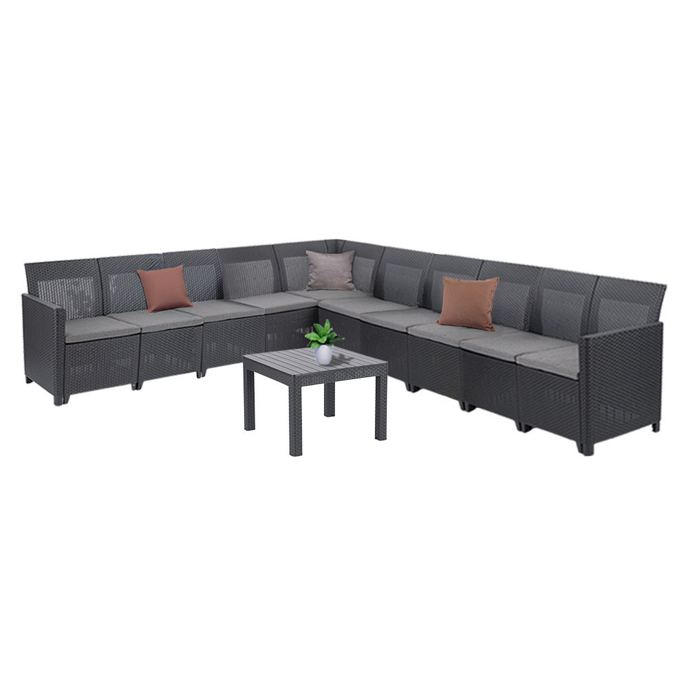 A Claire XVI 10 személyes sarokgarnitúra egy strapabíró, modulárisan bővíthető, esztétikus és maximálisan kényelmes kültéri bútorcsalád. Az Orlando asztallal kiegészítve tökéletes helyet ad a közös étkezésekhez, beszélgetésekhez.