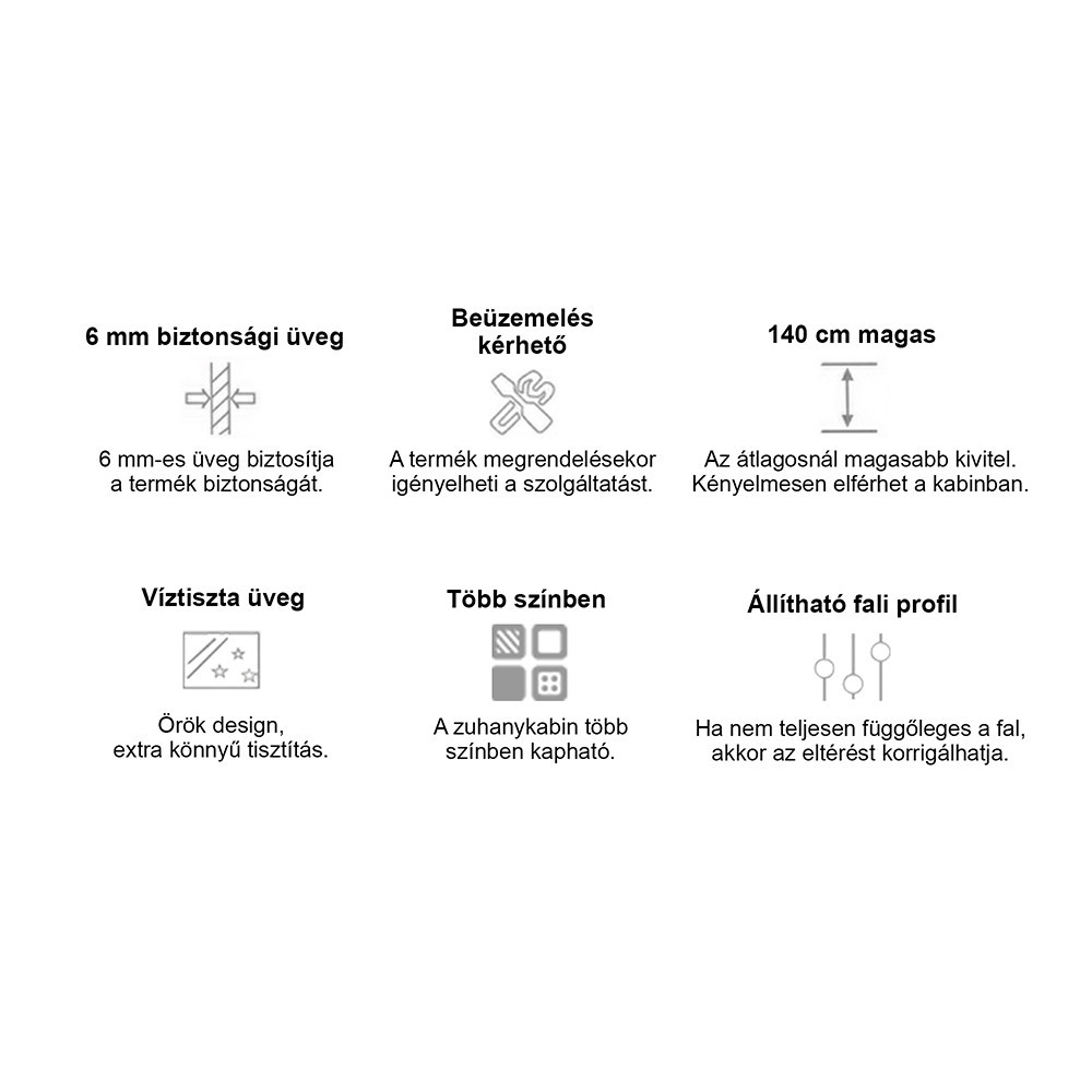 A terméket akár szakszervizes beépítéssel is megtudja rendelni, így az összeszerelésen sincs oka aggódni! 6 mm-es edzett biztonsági üveggel van ellátva. A funkcionalitás mellett természetesen a kádparaván megjelenésére is nagy figyelmet fordítottak. Üvegfelületének és letisztult, modern vonalainak köszönhetően elegáns megjelenést teremt minden fürdőszobának. A kádparavánt íves kialakításúra tervezték a biztonságos tusolás érdekében.