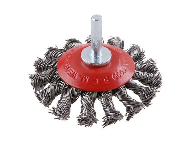 Rotary brush, version: COPY - patented wire 0.5 mm - copy, does not unravel even under extreme load, FESTA brushes guarantee quality used materials and processing, steel wire 0.5 mm, diameter 75 mm, stem 6 x 30 mm, number of wires : 675, wire length : 20 mm, max. permissible speed : 15000 1/min, use : removal of paint, rust, burrs, welding residues, slag, roughening, cleaning of metal parts, packaging : blister with euro hole.