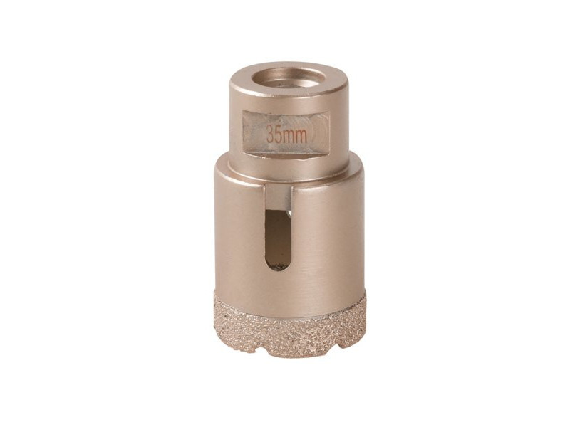 Professzionális gyémánt körkivágó M14-es menettel - sarokcsiszolókhoz 'Száraz' precíz és gyors fúráshoz kőben, csempében, járólapban, gránitban, márványban és más rendkívül kemény anyagokban nem csak az építőiparban. Gyémántréteg magassága 10 mm, hosszú élettartam Segédszerszám nélkül, a kívánt helyen pontos furatot vághat a kívánt helyre Ajánlott munkafolyamat - csavarja a koronát közvetlenül a sarokcsiszoló fejének menetére, húzza meg erősen, kezdje el kivágni a kívánt lyukat 45°-os szögben, a korona és a csiszoló fordulatszáma azonnal biztosítja az illeszkedést a kívánt helyre, lassan, egyenletes nyomással egyenesítse a fúrás irányát függőleges helyzetbe, kisebb átmérőjű 6 - 14 cm a kemény csempékbe való fúráshoz, minden lyuk között. Felforrósodás után csak merítse egy pohár vízbe, vagy hagyja kihűlni a levegőn!