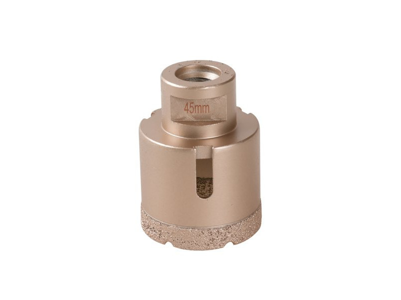 Professzionális gyémánt körkivágó M14-es menettel - sarokcsiszolókhoz 'Száraz' precíz és gyors fúráshoz kőben, csempében, járólapban, gránitban, márványban és más rendkívül kemény anyagokban nem csak az építőiparban. Gyémántréteg magassága 10 mm, hosszú élettartam Segédszerszám nélkül, a kívánt helyen pontos furatot vághat a kívánt helyre Ajánlott munkafolyamat - csavarja a koronát közvetlenül a sarokcsiszoló fejének menetére, húzza meg erősen, kezdje el kivágni a kívánt lyukat 45°-os szögben, a korona és a csiszoló fordulatszáma azonnal biztosítja az illeszkedést a kívánt helyre, lassan, egyenletes nyomással egyenesítse a fúrás irányát függőleges helyzetbe, kisebb átmérőjű 6 - 14 cm a kemény csempékbe való fúráshoz, minden lyuk között. Felforrósodás után csak merítse egy pohár vízbe, vagy hagyja kihűlni a levegőn!