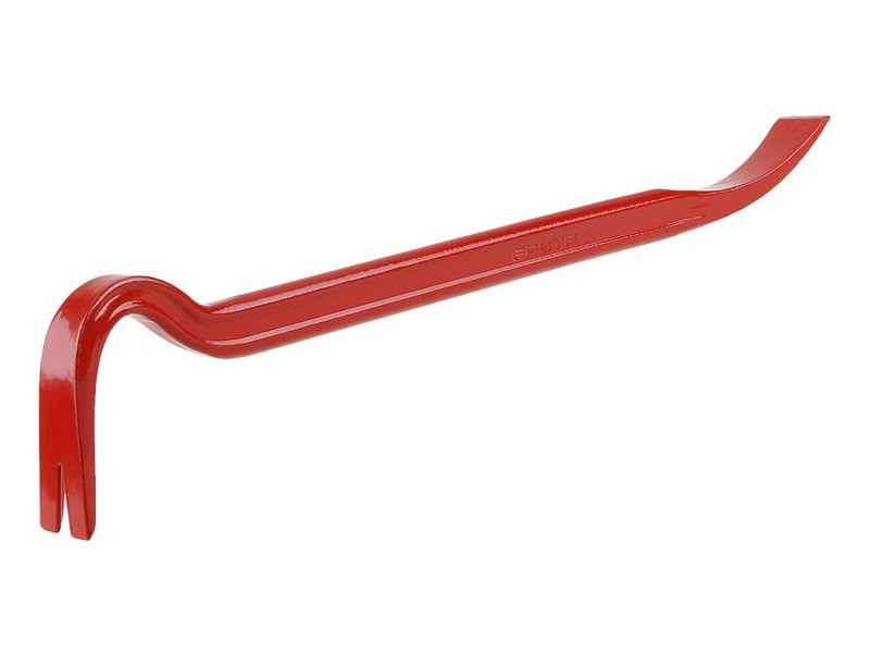 Pry bar for prying crates, for pulling out nails. Properly shaped to maximize strength, oval shape.