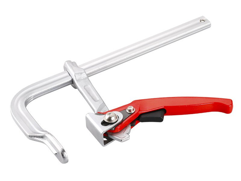 Forged quick release clamp lever quick-clamping mechanism with tooth lock movable jaw for precise adjustment of the shape of the clamped material for professional carpentry, joinery, welding work
