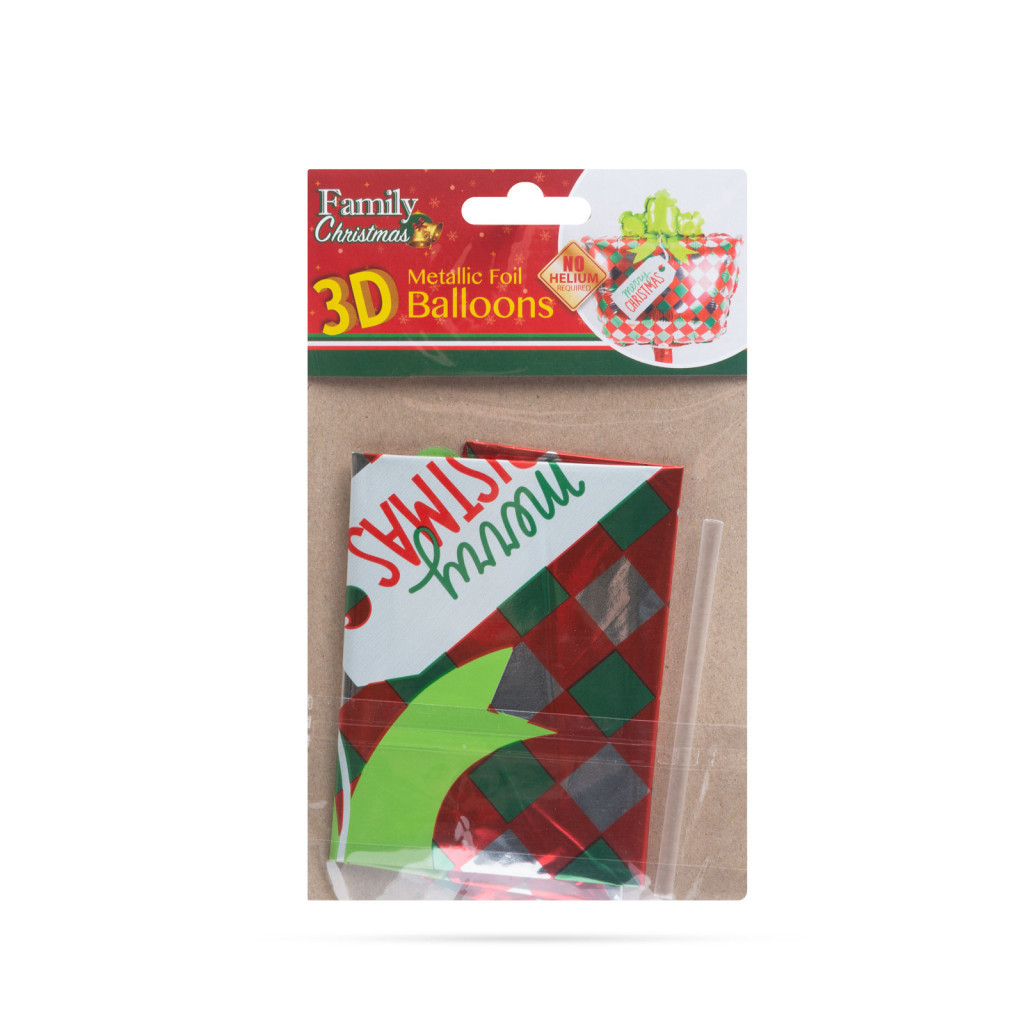 Family Christmas Karácsonyi lufi - ajándék - alumínium - 30 x 18 cm (58270D)