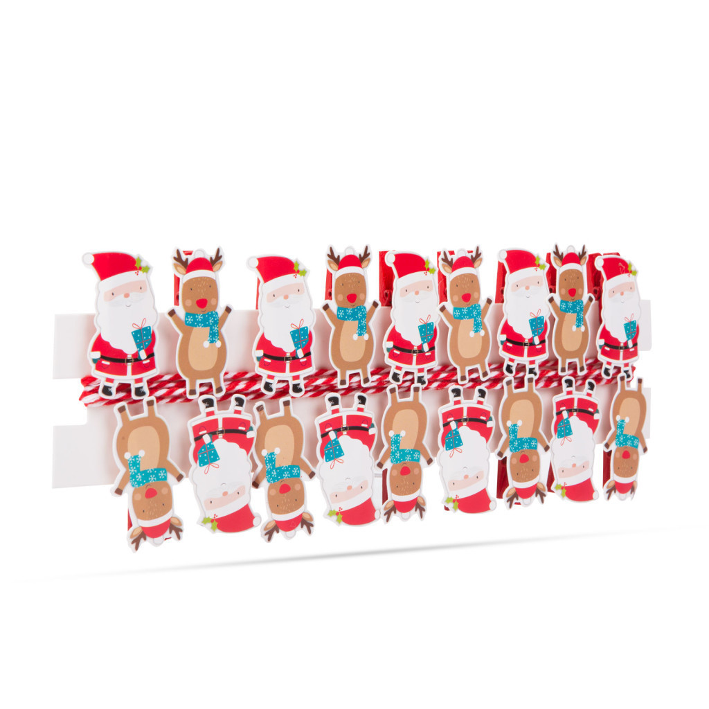 Family Karácsonyi csipesz szalaggal - mikulás, rénszarvas - 22 x 35 mm - 18 db, 2 m / csomag
