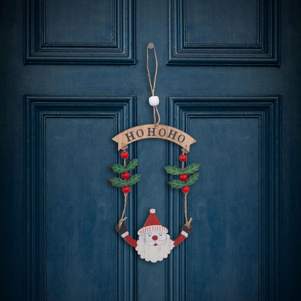 Ez a gyönyörű fából készült Mikulás figura tökéletes kiegészítője lehet a karácsonyi dekorációnak otthonában. A figura egy szépen kidolgozott Mikulás alak, amely bogyókkal és HoHoHo felirattal van díszítve, ami az ünnepi hangulatot és vidámságot sugallja. A fából készült díszek, melegséget és természetességet kölcsönöznek bármilyen ünnepi dekorációnak. A kidolgozott, részletesgazdag festés gondoskodik az aprólékos és szemet gyönyörködtető megjelenésről. A figura egy erős, de könnyű fából készült darab, amely felakasztható az otthona különböző pontjain.