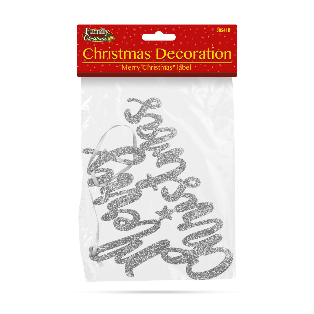 Family Karácsonyi dekoráció - "Merry Christmas" felirat - 20 x 12 cm - ezüst