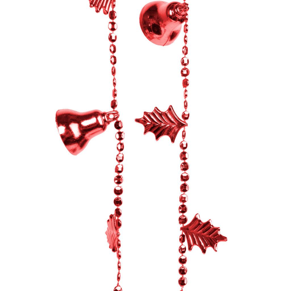 Karácsonyi girland harangokkal - fényes piros - 260 cm