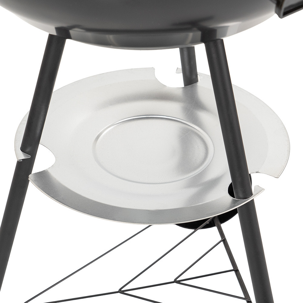 A beépített hamugyűjtő tál lehetővé teszi a könnyű takarítást, így a felesleges hamu nem szóródik szét a kertben vagy a teraszon. A fix tárolópolc extra kényelmet biztosít, hiszen itt elhelyezhetők a grillezéshez szükséges eszközök vagy a faszén.