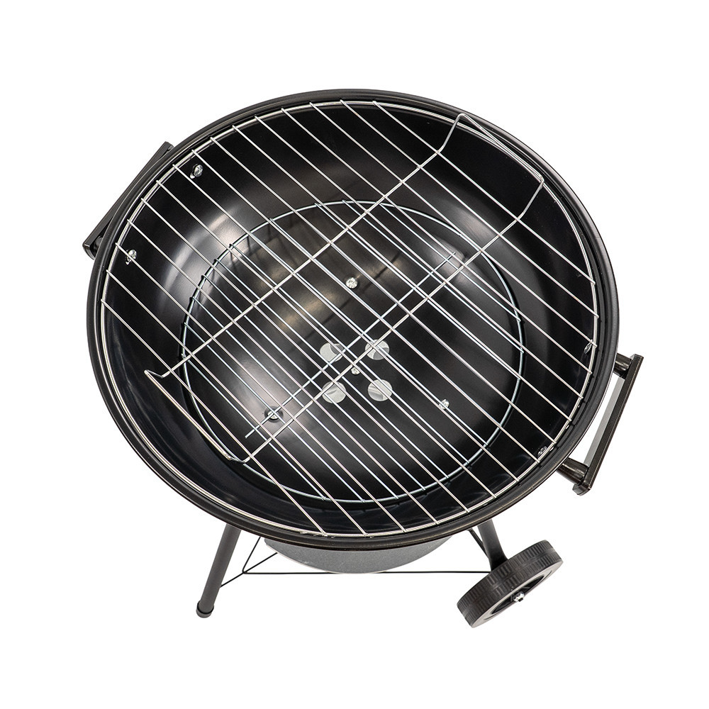 A faszenes kerti gömbgrill sütő ideális választás a szabadtéri grillezés szerelmeseinek. A 45 cm-es átmérőjű sütőfelület elég nagy ahhoz, hogy egyszerre több adag ételt is elkészítsen. A teljes magasság 70 cm, míg a sütőfelület 59 cm magasan helyezkedik el, ami kényelmes használatot biztosít. A beépített kerekeknek köszönhetően könnyen mozgatható, így a kertben, a teraszon vagy akár kempingezés közben is gond nélkül használható.