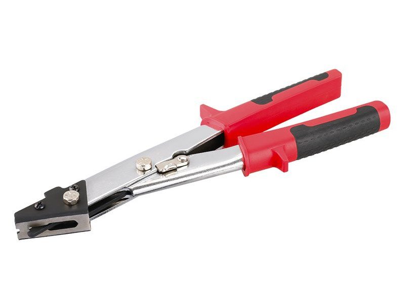 sheet metal shears - manual for steel sheets max. 0.8 mm, aluminum and copper sheets max. 1.2 mm especially suitable for cutting holes of various shapes, but also for ordinary sheet metal cutting - cut 2.5 mm a 10 mm hole is sufficient for internal cuts transmission mechanism - better transmission of power during cutting