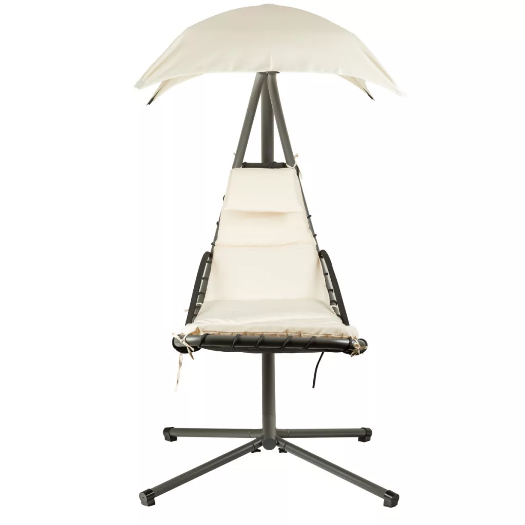 A függő nyugágy stabilitását és biztonságát jól megtervezett vázának köszönheti, amely sima hintázást és lengést tesz lehetővé. A nagy, állítható napellenző hűs árnyékot nyújt a forró napokon, míg a lágy lengő mozgás fokozza a pihenést. A vízálló, puha matrac fejtámlával igazán kényelmes pihenést biztosít.