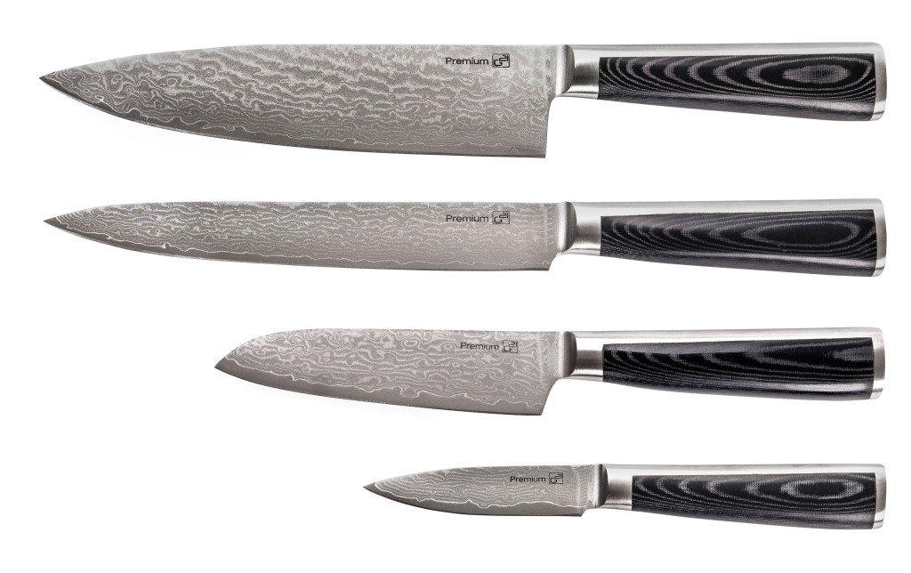A konyhában a damaszkuszi acél késkészlet remek választás. A damaszkuszi acél nagyobb keménységgel és kopásállósággal rendelkezik, és az acél ritka és egyedi mintázatának köszönhetően a szépség és a luxus egyedülálló kombinációját kapja kiváló vágási tulajdonságokkal. A készlet tartalmaz egy séf kést egy 20 cm hosszú vágókést, egy 13 cm hosszú Santoku kést és egy univerzális kést 9 cm hosszúságú pengével. A készlet tartalmaz egy bambuszblokkot a kések biztonságos tárolására és egy köszörűkővet 1000/6000 szemcsemérettel, vezetővel.