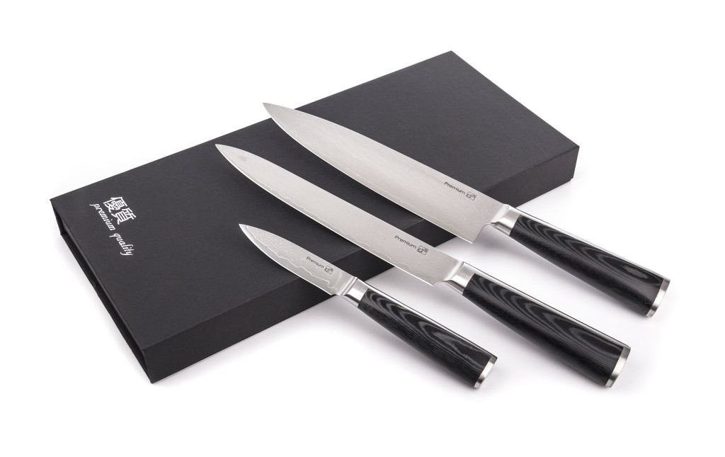 A háromrészes G21 Damascus Premium késkészlet ideális húsdaraboláshoz és szeleteléshez. Ajándékként is tökéletes választás.