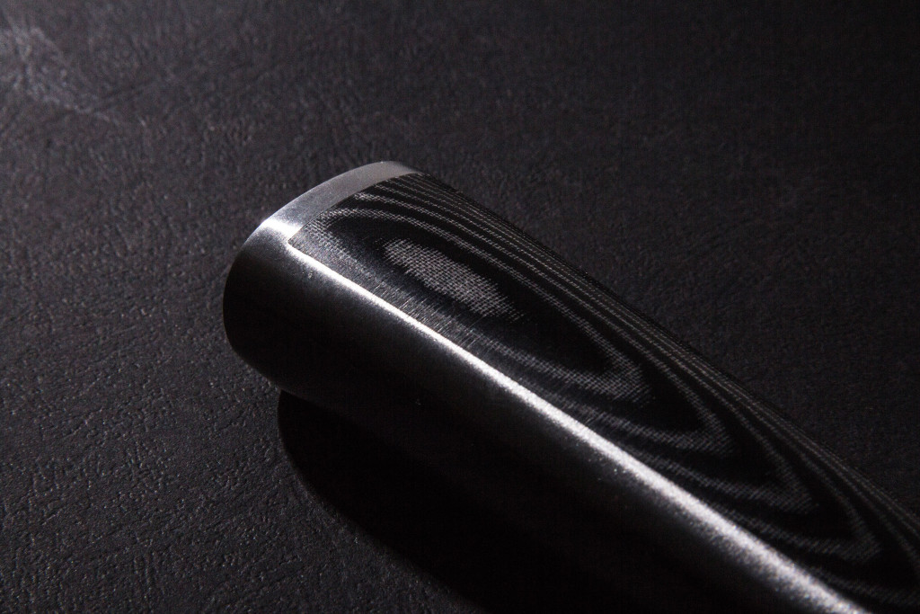 A markolat rendkívül erős és ellenálló laminált anyagból, úgynevezett Micarta-ból készült. A Micarta szövetből vagy üvegszálas anyagból és hőre keményedő gyantából áll. Az eredmény egy kemény, strapabíró markolat, amely hosszú évekig megőrzi minőségét. A kések sima, letisztult vonalai minden konyha díszévé válnak.