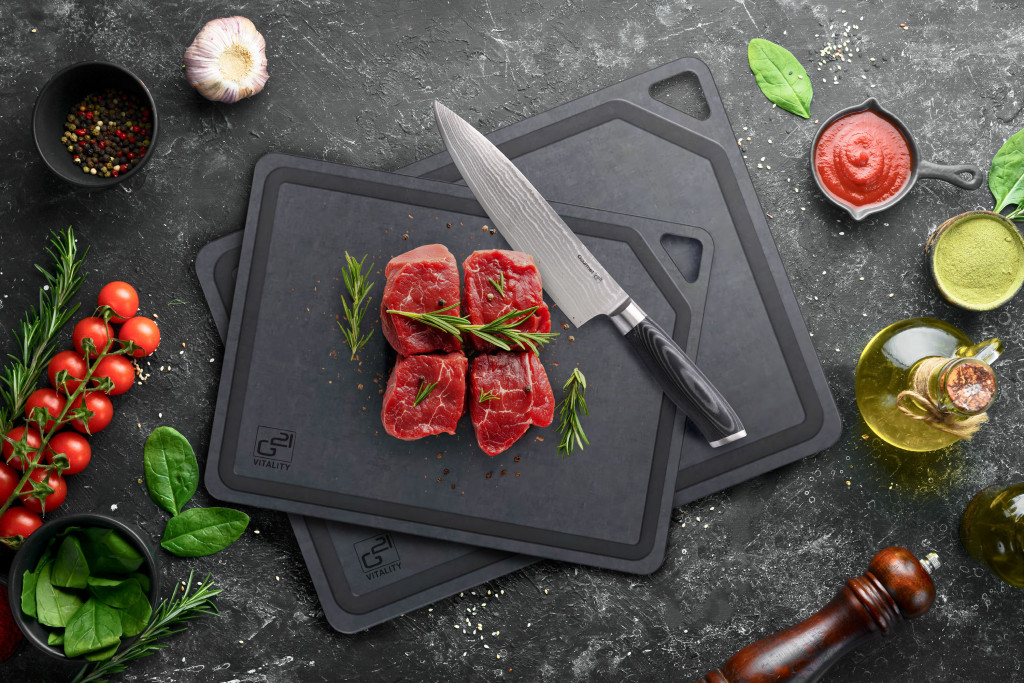 G21 EcoCut szeletelődeszka természetes cellulózból – 2 darabos készlet, grafit színben