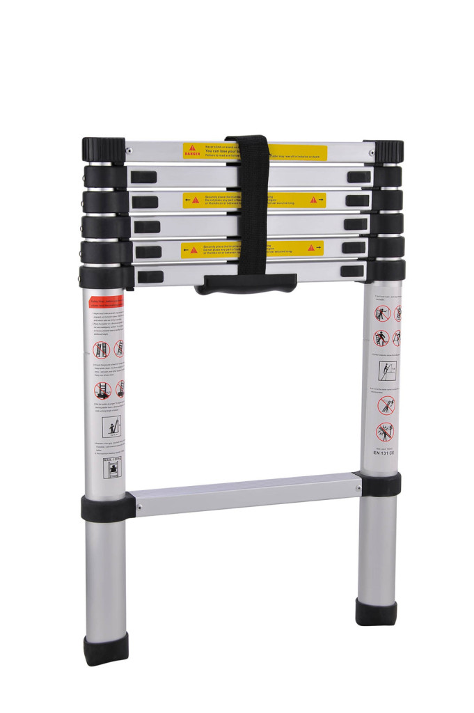 Amennyiben a műhelyében vagy a háztartásban nincs elég tároló hely, ez az összecsukható alumínium teleszkópos létra ideális választás az Ön számára! Összecsukott állapotban csak 0,67 m magas, tehát könnyen kezelhető, akarja akár áthelyezni vagy autóval szállítani. A szerkezete elemei, a létrafokok és a rögzítő zárak az ergonómia elvek szerint vannak kialakítva és támogatják az egyszerű és intuitív használatot.