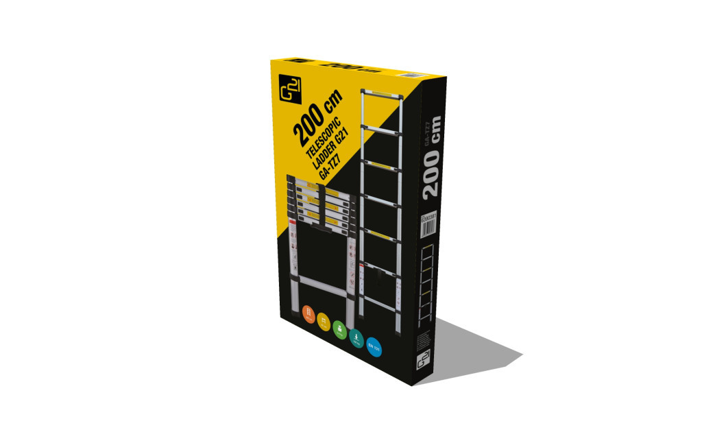 A G21 GA-TZ7-2M alumínium teleszkópos létra szakemberek számára kifejlesztve, egy elsőosztályú modell, amely erős és tartós szerkezettel rendelkezik a duralimínium profiloknak köszönhetően. A szerkezetére könnyű alumínium anyagok voltak felhasználva, amelyek csökkentik a súlyát, ugyanakkor biztosítják, hogy a létra a lehető legkisebb méretre legyen összecsukva.