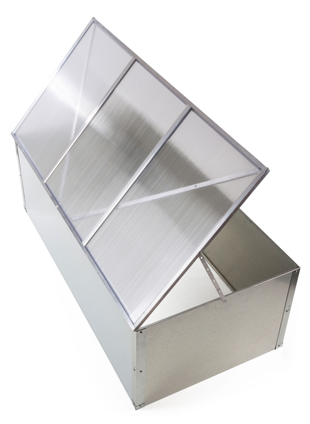 A felső alumíniumkeret 4 mm-es polikarbonát töltelékkel kényelmeshozzáférést biztosít az ültetéshez és a már elültetett növényekgondozásához.