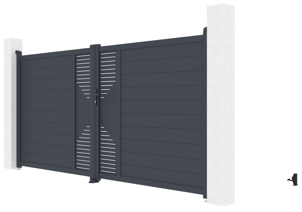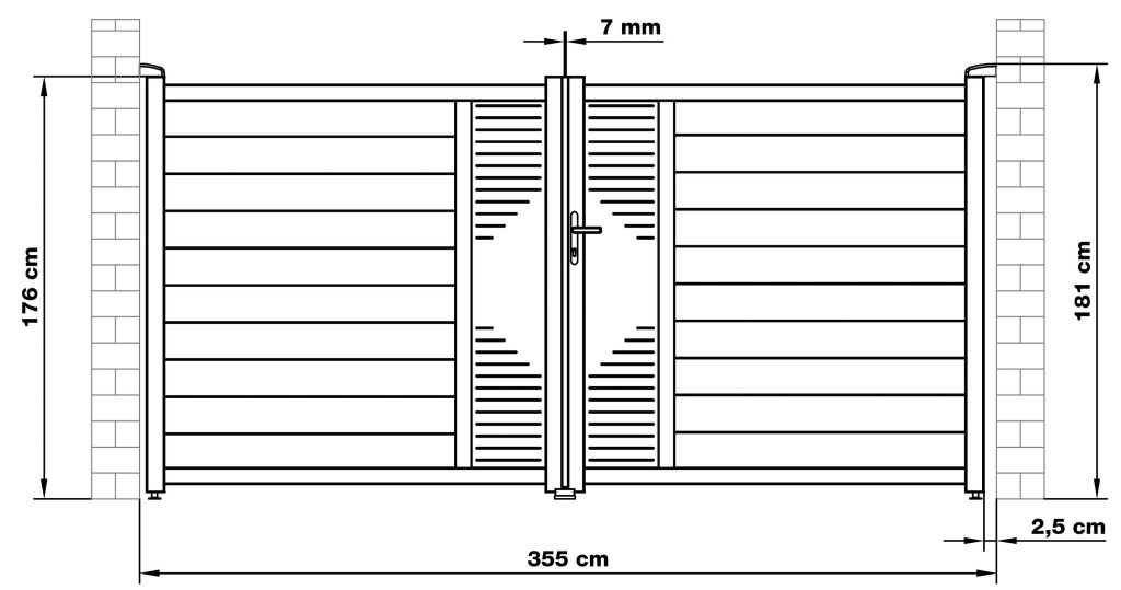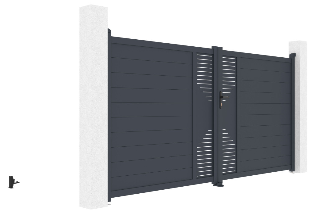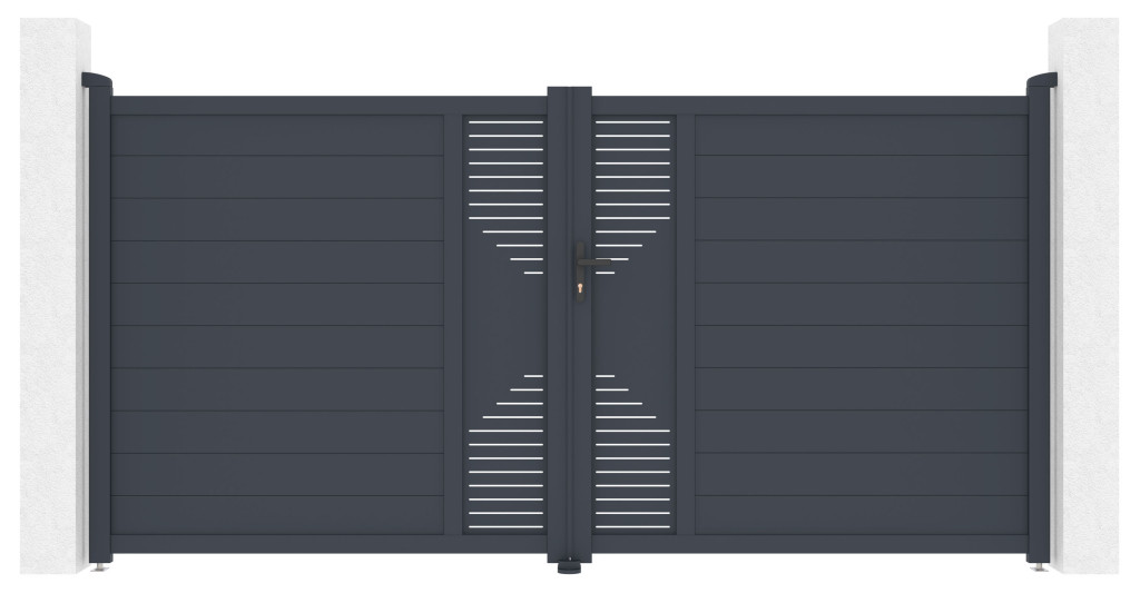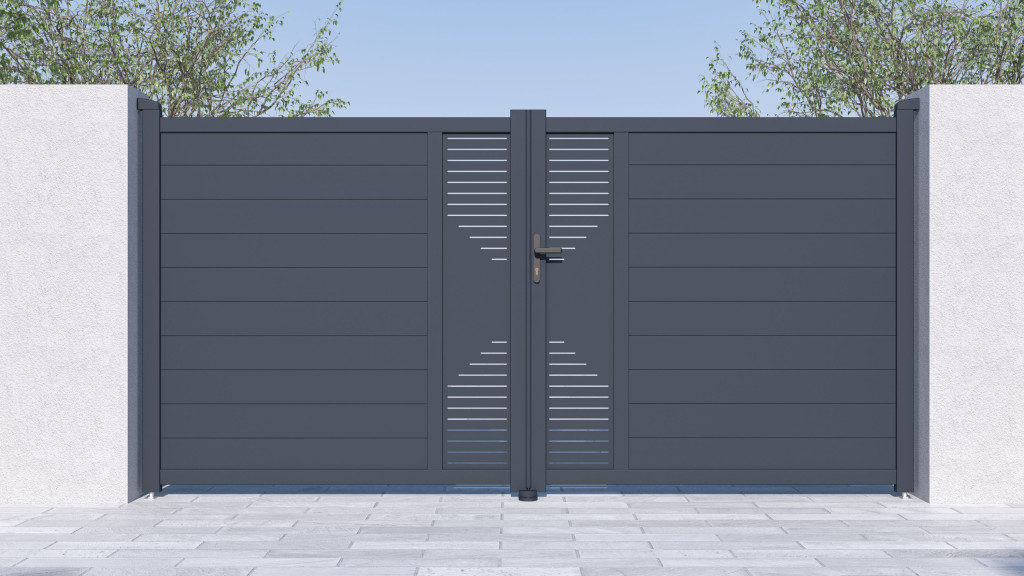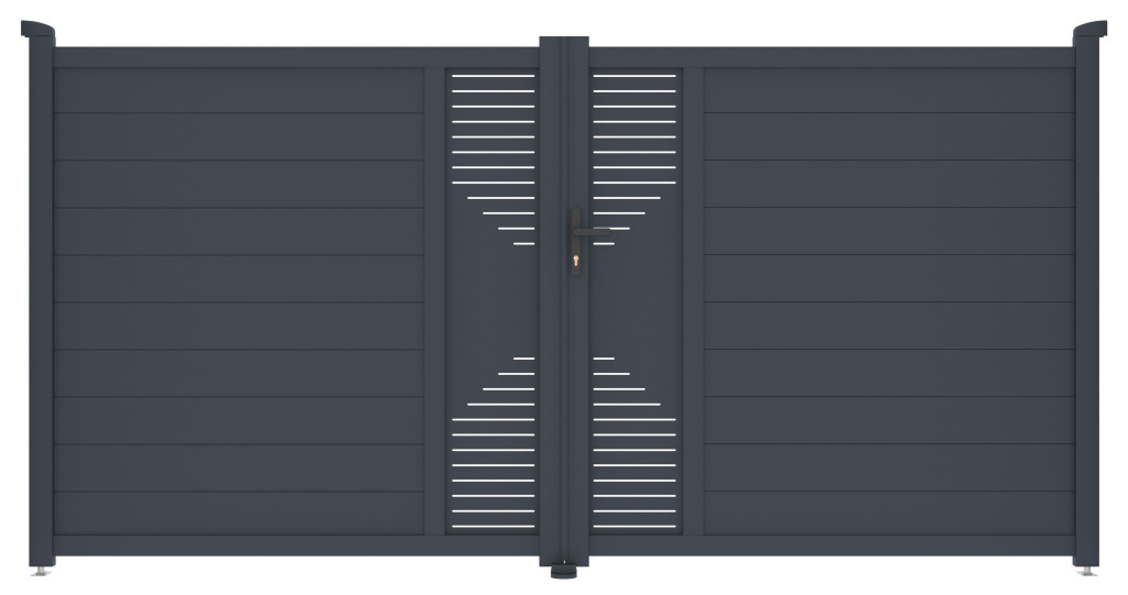 A Marion kétszárnyú bejárati kaput könnyű, mégis nagyon megbízható és mindenekelőtt karbantartást nem igénylő alumíniumból készítettük. Repedésnek és hajlításnak ellenálló, nem rozsdásodik és a nagyobb tartósság érdekében porszórt bevonattal felvitt antracit árnyalat ad tetszetősséget és színtartósságot a bejárati ajtónak. Ezenkívül a Marion alumínium kapu megerősített profilja lehetővé teszi a jövőben elektromos nyílás beépítését.