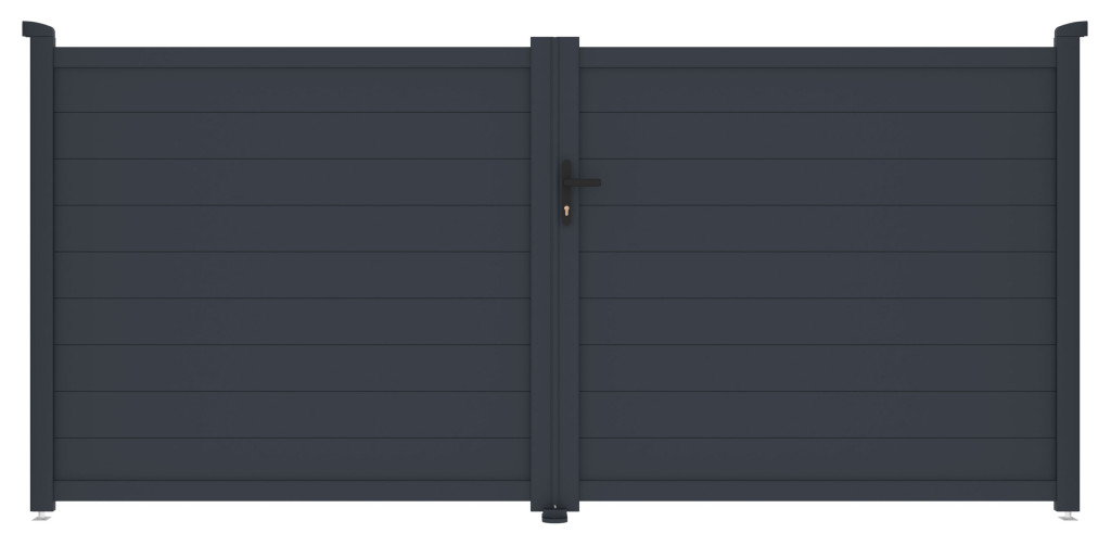 Az Orlando bejárati kapu könnyű, mégis erős és karbantartásmentes alumíniumból készült. Ellenáll a repedésnek és a deformációnak, nem rozsdásodik, és az antracit színű porfestésnek köszönhetően esztétikus és színtartó. A megerősített profilnak köszönhetően később elektromos nyitás is felszerelhető rá.