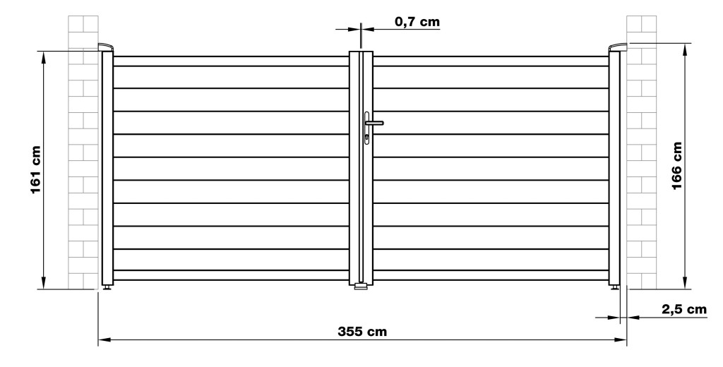 A bejárati kapu a kerítés fontos része. Az Orlando alumíniumkapu 158 cm magas, porfestett felületének köszönhetően hosszabb élettartammal rendelkezik, ellenálló, esztétikus, és szélessége igazítható a meglévő kerítéshez. Kilinccsel és zárbetétes zárral nyitható, a 350 cm-es szélesség pedig zavartalan áthaladást biztosít minden járműnek.