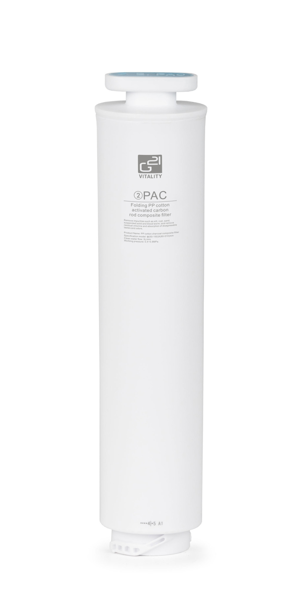 A G21 Osmo víztisztító csereszűrője az első lépés a víz tisztításához. A kétfokozatú szűrő megköti a szilárd részecskéket, például a rozsdát, homokot vagy üledéket, és eltávolítja a klórmaradványokat. Ezenkívül felszívja a kellemetlen szagokat és ízeket,hogy az így kapott víz kellemesen iható legyen.