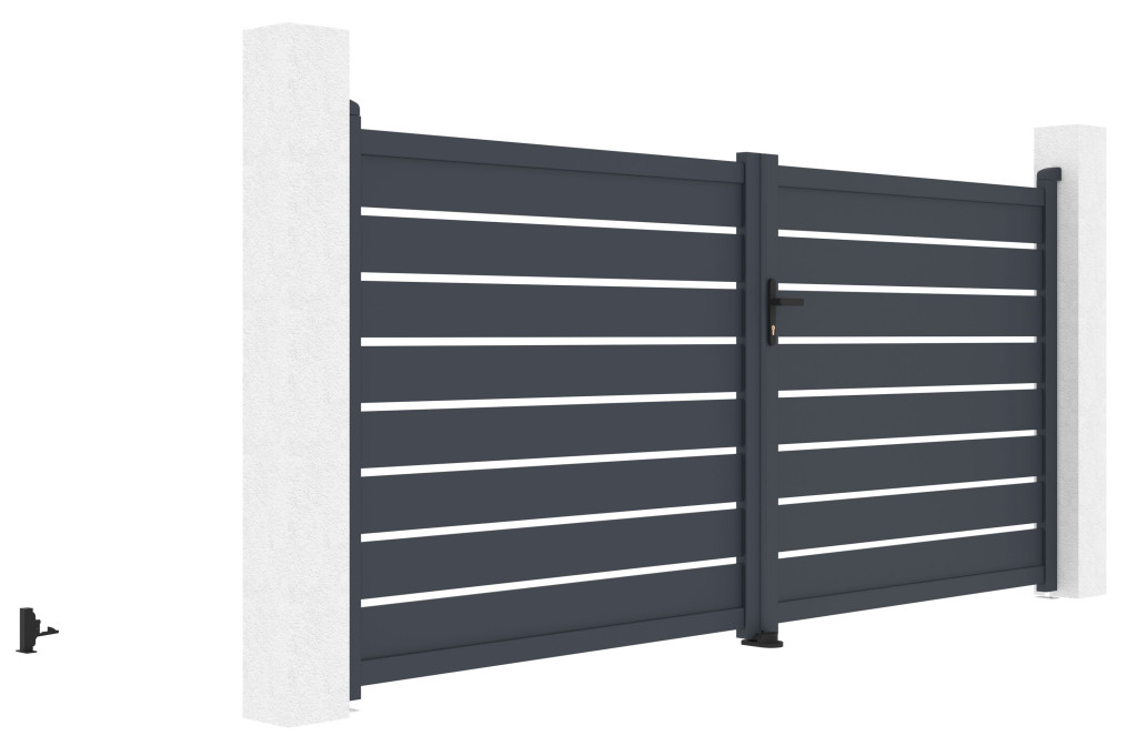 A G21 Reno kétszárnyú bejárati kapu funkcionalitást, biztonságot, magánéletet és esztétikát ötvöz. Modern, látványos megjelenésével növelheti az ingatlan értékét is.