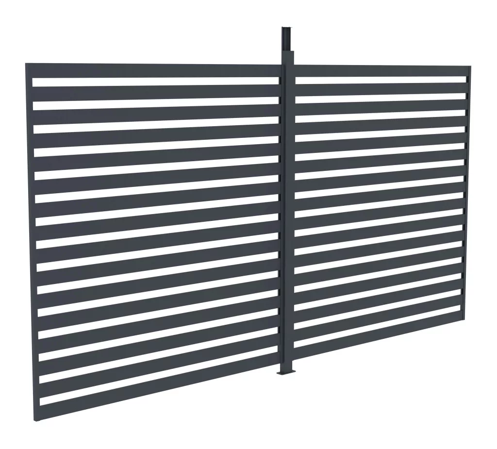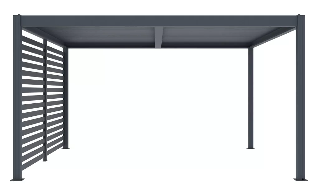 Fix lamellás fal – praktikus kiegészítő az Austin pergolához. Biztosítja a magánszférát, növeli a szél-, eső- és napvédelmet, valamint modern megjelenést kölcsönöz. A szerkezet kiváló minőségű alumíniumból készült, amely ellenáll az időjárási hatásoknak és minimális karbantartást igényel.