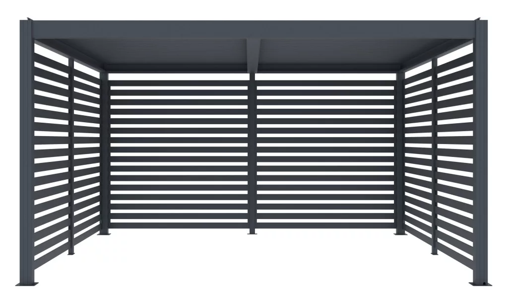 A fal fix, nem dönthető lamellákkal rendelkezik, így stabilabb és egész éven át hatékony védelmet nyújt. Elegáns antracitszínű dizájnja tökéletesen illeszkedik a pergolához, és bármilyen kültéri stílushoz jól adaptálható. A telepítés egyszerű, és pontosan az Austin pergola méretére szabott.