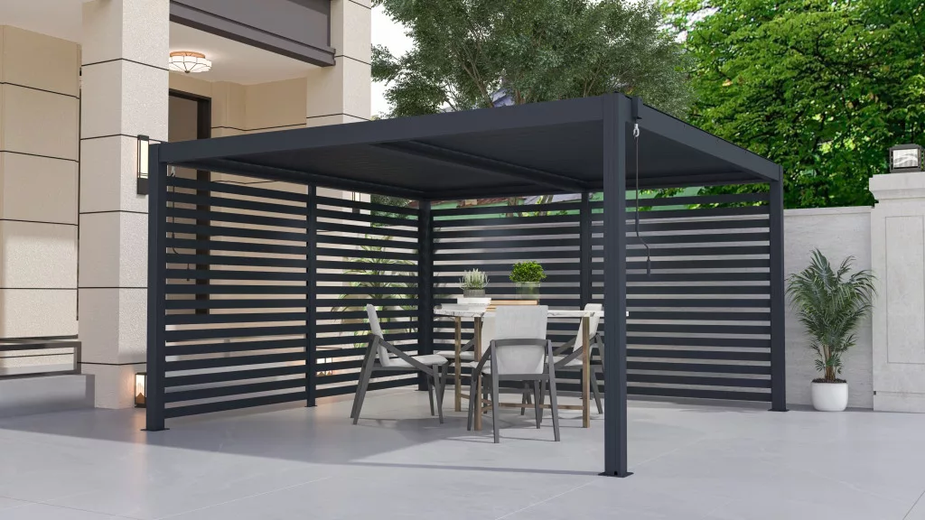 A fix lamellás fal ideális választás mindazok számára, akik szeretnék továbbfejleszteni pergolájukat, és kellemesebb, védettebb kültéri környezetet kialakítani.