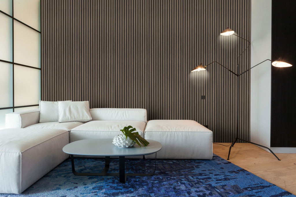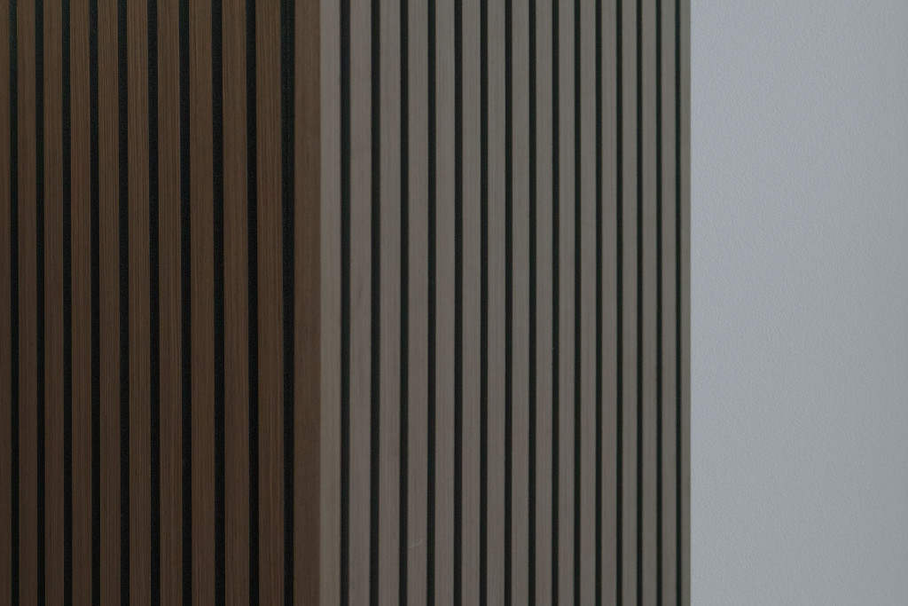 A sötét dió színű G21 záróprofil ideális választás az akusztikus panelek burkolatának elegáns lezárásához.