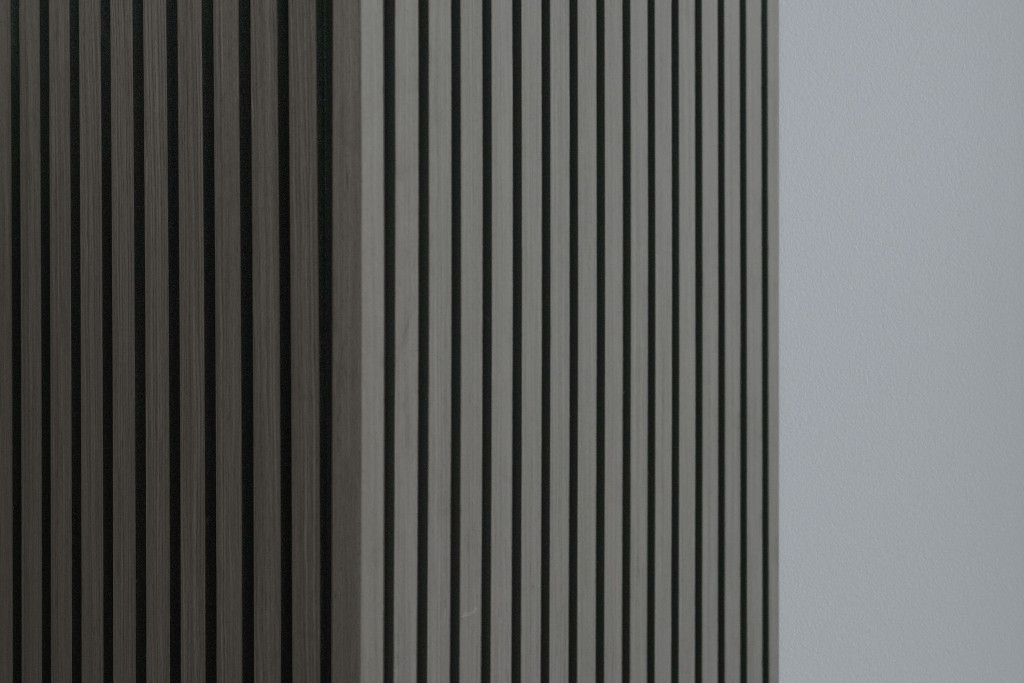 A sötét szürke színű G21 záróprofil ideális választás az akusztikus panelek burkolatának elegáns lezárásához.