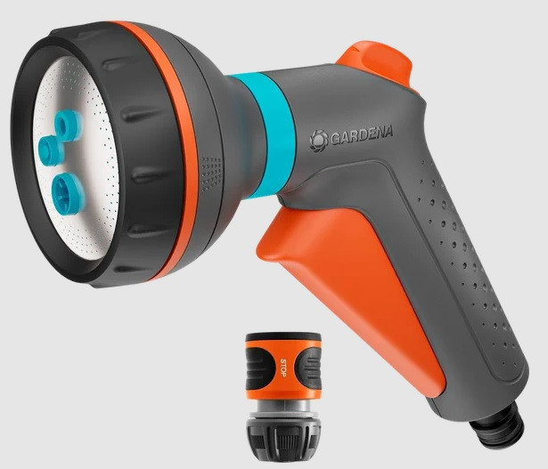 A kiváló minőségű, többfunkciós öntözőfej négy különböző vízsugárformát, praktikus be- és kikapcsoló gombot, valamint UV- és alkalmi fagyvédelmet kínál, és megkönnyíti az öntözést.Négy vízsugárforma: A többfunkciós öntözőfej különböző öntözési és tisztítási feladatokra használható. Megbízható minőség: A többfunkciós öntözőfej a GARDENA magas színvonalú követelményeinek megfelelően készült Németországban.Időjárásálló: Az öntözőfej védett UV-sugárzás és alkalmi fagy ellen.Nem fárad el a kéz: A be-/kikapcsolóbillenytű automatikusan zár, így az öntözőfej állandó áramlást biztosít.Tartalom: 1x Classic Többfunkciós öntözőfej, 1x 1/2" - 5/8" VízmegállítóA GARDENA Classic Többfunkciós öntözőfej készlet vízmegállítóval négy sokoldalú vízsugárformával, UV- és alkalmi fagy elleni védelemmel rendelkezik a kertészeti szezonban; német minőség.Négyféle vízsugárformaA Classic Többfunkciós öntözőfej négyféle vízsugárformát kínál. A tölcsér sugár érzékeny növények öntözésére, az erős sugár tisztításra alkalmas. A vastag sugár cserepes növények öntözésére, a lágy permet pedig virág- és zöldségágyások alapos öntözésére alkalmas. A minták között könnyedén válthatsz, így gyorsan és hatékonyan elvégezheted az öntözési vagy tisztítási feladatokat. Megbízható minőség Ez a öntözőfej a GARDENA öntözési szakértelmét tükrözi: Németországban gyártva, kiváló minőségű anyagokból. IdőjárásállóA Többfunkciós öntözőfej UV-sugárzás és alkalmi fagy ellen védett. A locsoló a kertészeti szezonban a szabadban hagyható.Nem fárad el a kéz hosszabb öntözés közbenA hosszú ideig tartó öntözés és tisztítás fárasztó a kéznek, ezért ezt az öntözőfejet automatikusan rögzíthető be-/kikapcsolóval tervezték. Egyszerűen nyomd meg a ravaszt és rögzül – így öntözhetsz és tisztíthatsz fáradság nélkül.VízmegállítóvalA készlet tartalmaz egy vízmegállítót. A vízmegállító automatikusan leállítja a vízáramlást, amikor lecsatlakoztatod a locsolót. Ez lehetővé teszi, hogy a eszközöket egy pillanat alatt kicseréld anélkül, hogy vizes lennél.AlkalmazásVirágágyások, cserepes és érzékeny növények öntözése, erőteljes tisztítás és szennyeződések eltávolítása, valamint vödrök gyors feltöltéseVízsugár formaLágy permet, erős sugár, tölcsér sugár, vastag sugárKülönleges jellemzőkFagy ellen védettIgenGardena szavatosság5 évA fogantyún beállíthatóVízmennyiség szabályozhatóIgenVízátfolyás be/kiIgenZárIgen