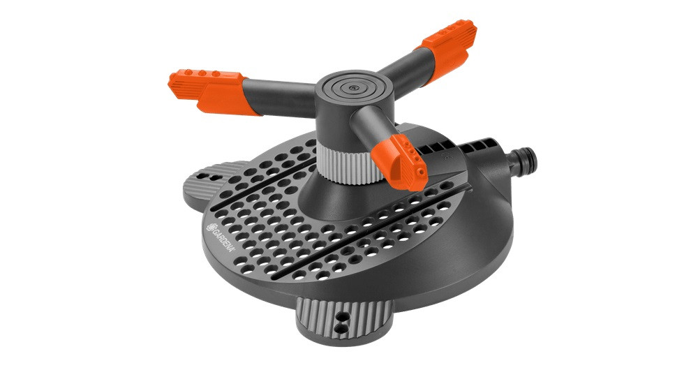 Praktikus köresőztető kisebb és közepes méretű területekre. Beöntözött terület: max. 250 m2 Öntözési távolság: O 3 – max. 18 m2 Az összehangolt precíziós fúvókák egyenletes, tócsamentes vízelosztást biztosítanak. Kivehető és tisztítható szűrő szennyeződések ellen. A locsolóláb biztosítja a stabil üzemelést és a mobil használatot. A két erős fémtüske stabilitást ad lejtőn vagy egyenetlen talajon való használatkor.