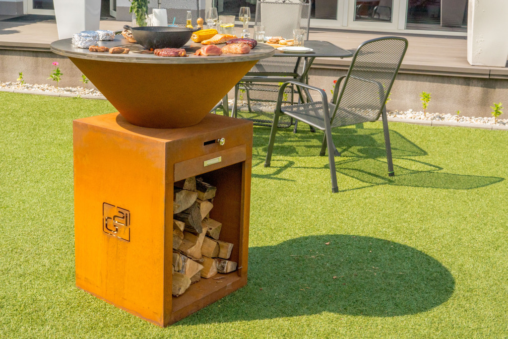 A Corten grill G21 úgy lett kialakítva, hogy a lehető leghatékonyabb legyen a grillezés. A grill alsó részén fedett hely található a fahasáb tárolására.