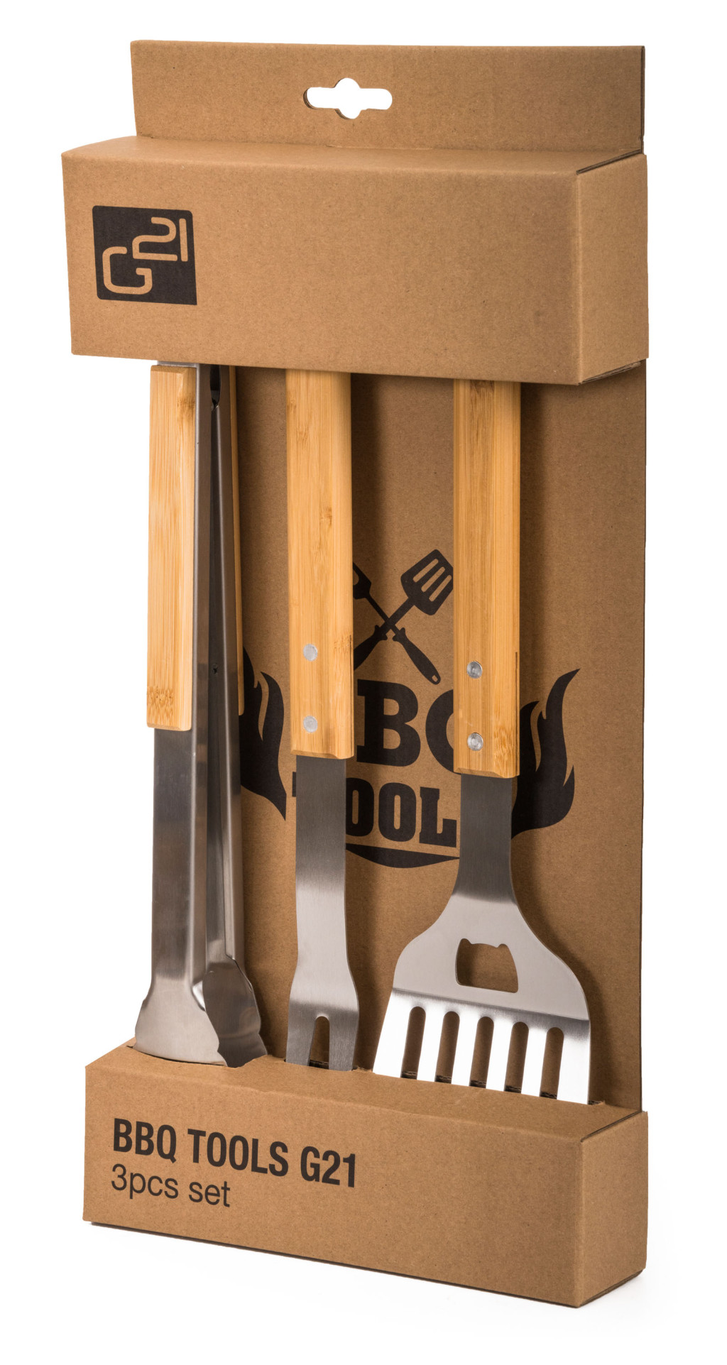 Élvezze a grillezést kényelmesen a G21 3 részes grillkészlettel. A grilleszközök strapabíró rozsdamentes acélból készültek, bambusz nyéllel a stílusos és kényelmes használat érdekében. Az átgondolt kialakítás nemcsak jól néz ki, hanem kellemes grillezési élményt is nyújt.