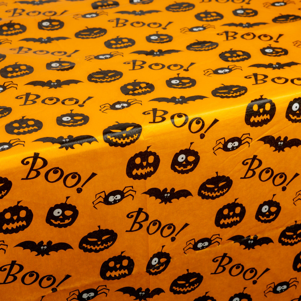 Varázsolja otthonát igazi Halloween hangulatúvá ezzel a vidám és egyedi asztalterítővel! A narancssárga alapon fekete tökök, denevérek és "Boo!" feliratok teszik tökéletessé az ünnepi dekorációt. Flanel anyaga puha, kellemes tapintású és könnyen kezelhető, tisztítható.
