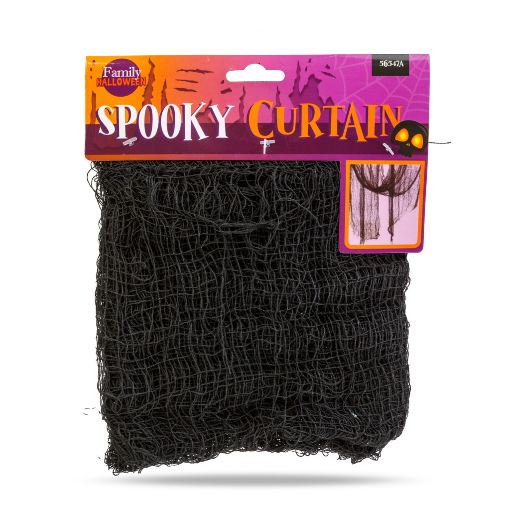 Igazán eredeti, hátborzongató halloween-i dekoráció ez a matt fekete, szövet függöny. Nélkülözhetetlen egy igazi halloween-i party dekorálásánál. Nagy mérete lehetővé teszi, hogy kültéren és beltéren egyaránt ijesztő hatást keltsen.